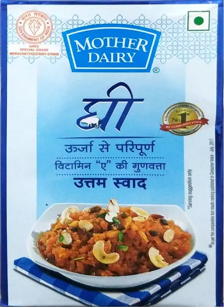 Made with strict quality standards, Mother Dairy Ghee is completely vegetarian, free from additives, and packed with essential nutrients to support a balanced diet.